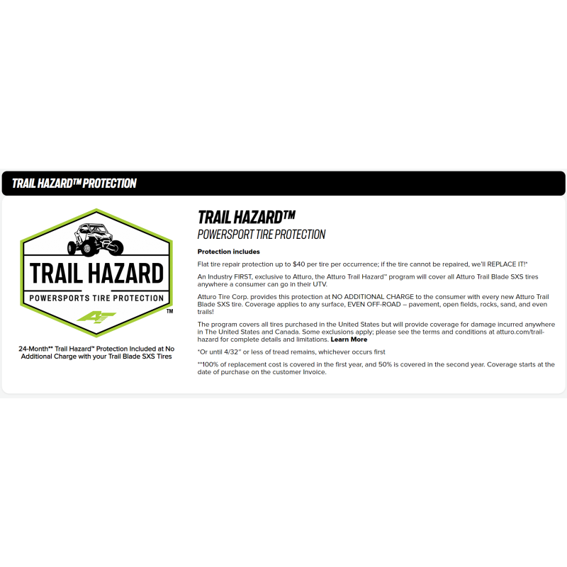 The race-proven tread pattern of the Trail Blade BOSS has made it to the SxS market. The Trail Blade BOSS SxS is a no-compromise, go-anywhere tire for those looking to “go their own way” for the ultimate SxS experience.