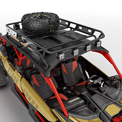 Ideal cargo solution for packing everything you need to live your off-road experience fully and completely. Built with lightweight 1.25″ (3.2 cm) diameter steel tubing. Loads of up to 75 lb. Integrated mounting points for lights can hold up to 8 pod-type LED lights (6 front and 2 back) or a 40″ (102 cm) LED bar (front). Features anchor points for spare tire attachment. Spare Tire Tie-Downs sold separately. Add the Cargo Box Net to secure and confine your cargo in the rack. Compatibility: Maverick X3 MAX