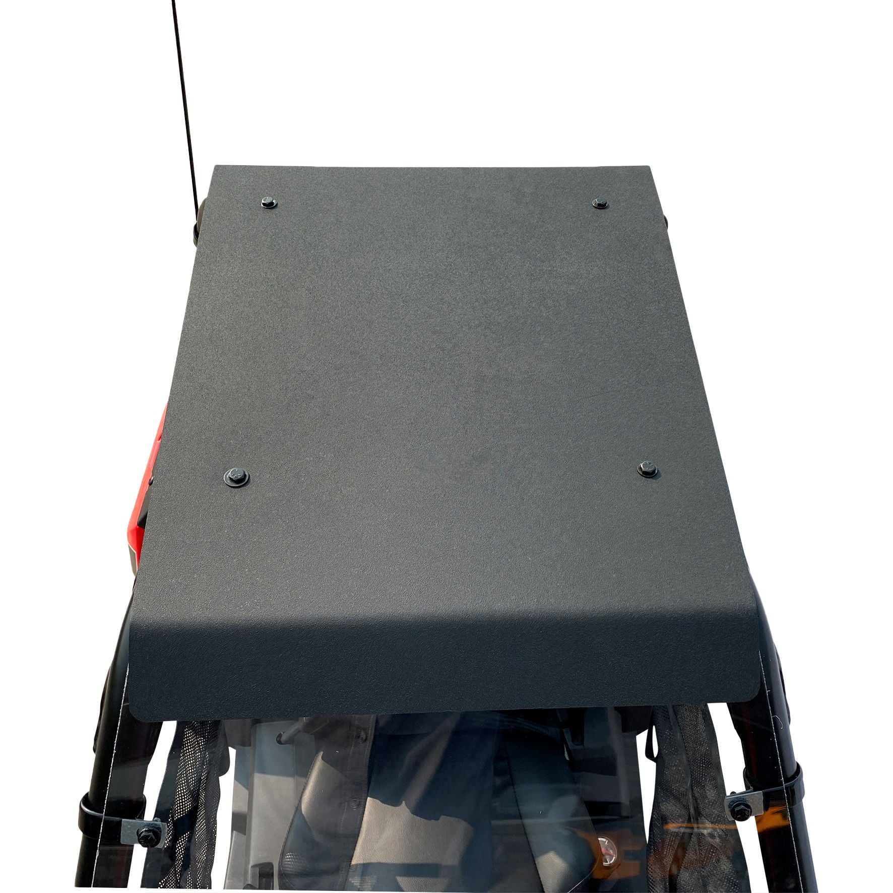 The Open Trail roof is made with 0.375″ HDPE (High Density Polyethelene) for maximum strength and UV resistance. It is attached to your roll bars using five galvanized steel, rubber coated P clamps that are bolted to the roof.